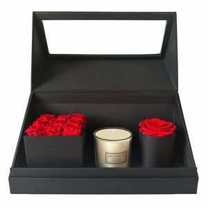 Forever Roses Gift Box (Black) – 4 Real Preserved Red Roses | Luxury Floral Gift That Lasts a Year